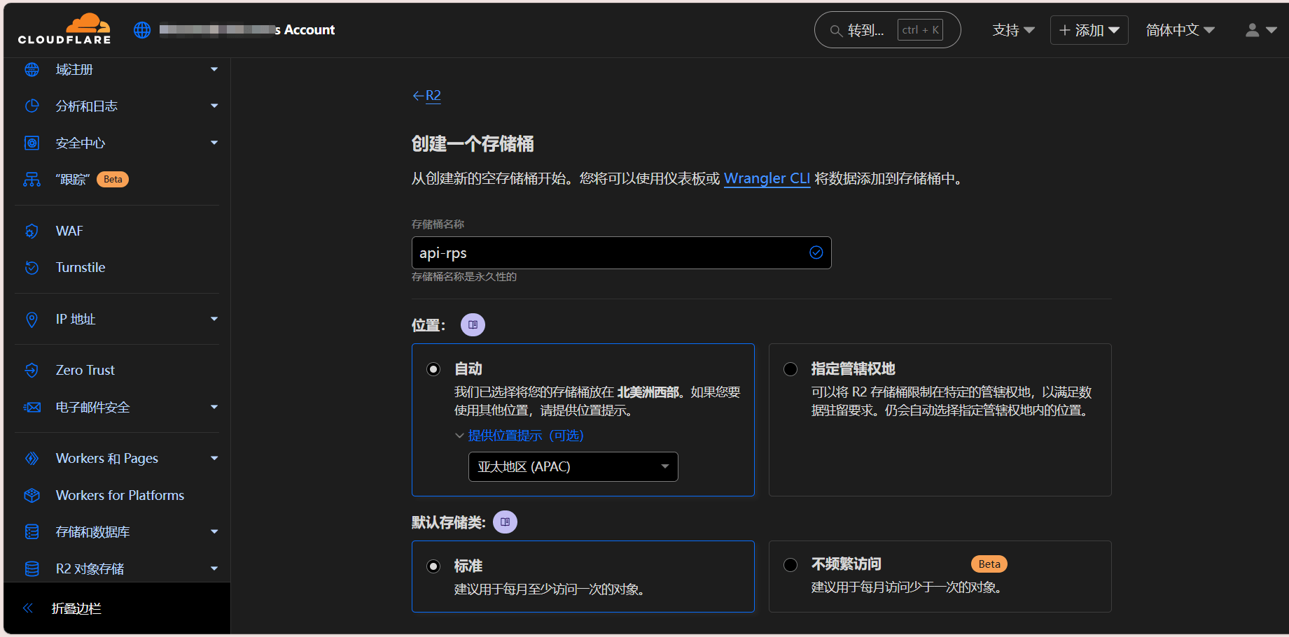 打开Cloudflare仪表板→R2对象存储→创建存储桶(如下图所示)
