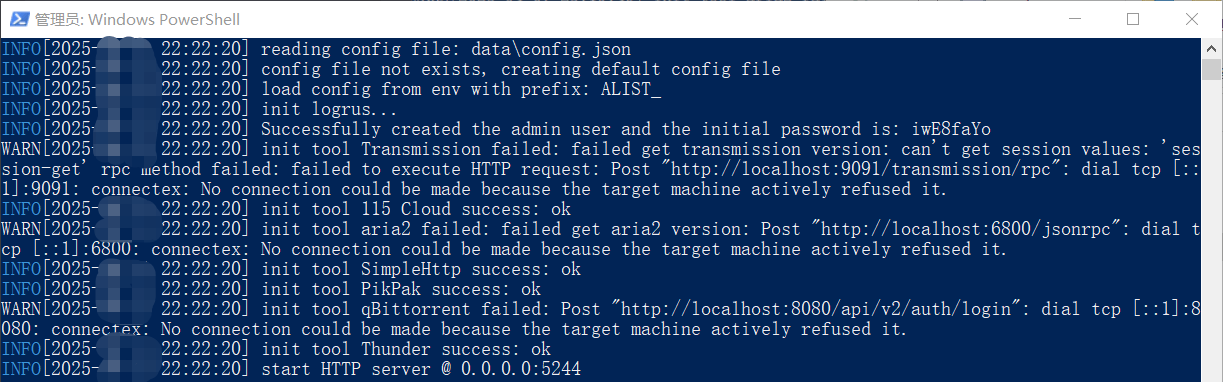./alist.exe server当Powershell的反馈如下时,这就对了