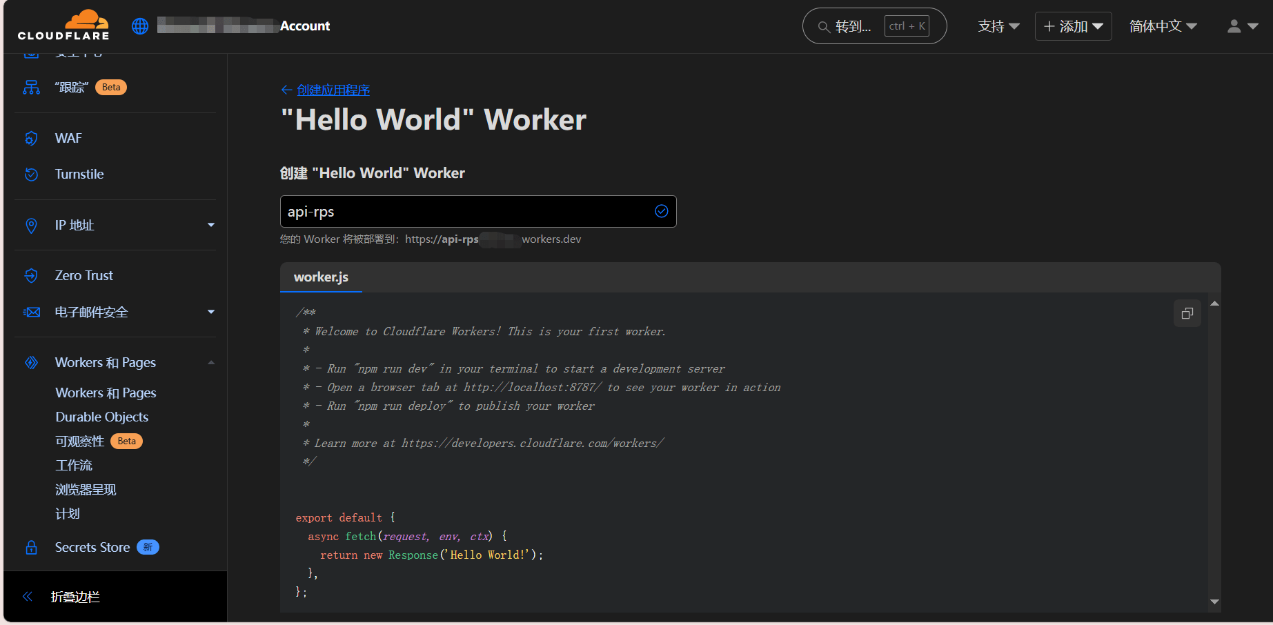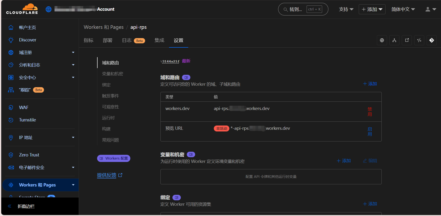 看到域和路由,将workers.dev后面跟着的那一串链接(以workers.dev结尾的)复制,然后拉出去访问